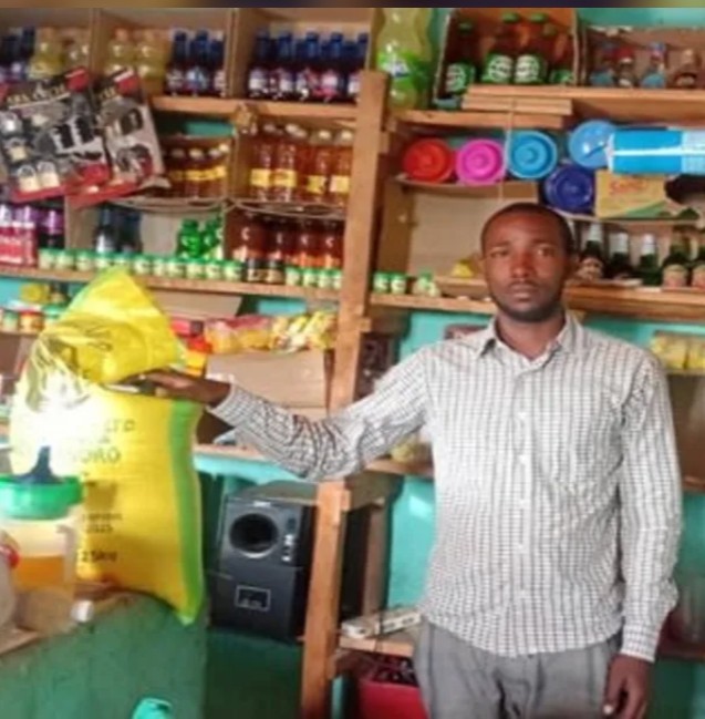 Patrick is a small shopkeeper in Rwanda, and we've supported him with a small donation (£50) to help develop the business, via a project organised by NGO Care International. He's single, age 31, and supporting his parents from his small stall that stocks things like rice, beans, maize, sorghum, cooking oil, detergents, and other non-perishable food items. The cash boost from Care and the local Microfinance partner will allow him to expand stock and better support his family - we wish him well.